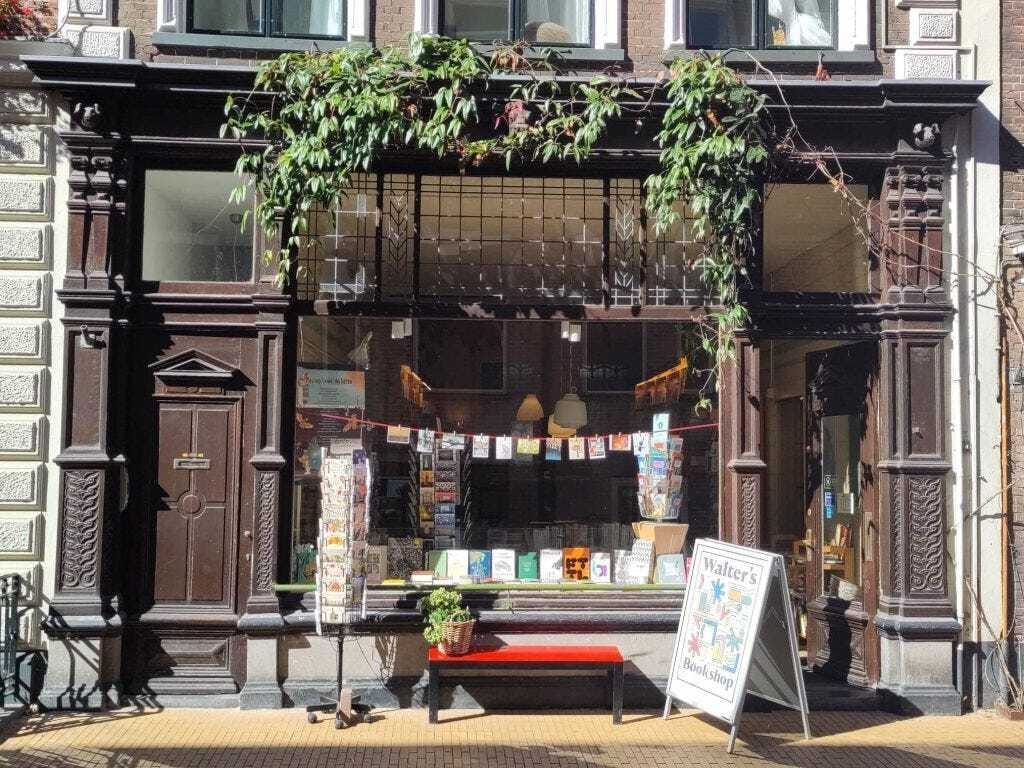 Situated next to The Cat Cafe, Godert Walter is a charming, cosy bookstore that deserves a spot on your ‘must-visit’ list. Although their selection of English books is more modest compared to some other stores, the bookstore’s unique charm makes it a worthwhile stop. The eye-catching window display, adorned with books and twinkling lights, adds to the store’s inviting atmosphere and makes it a visual delight.