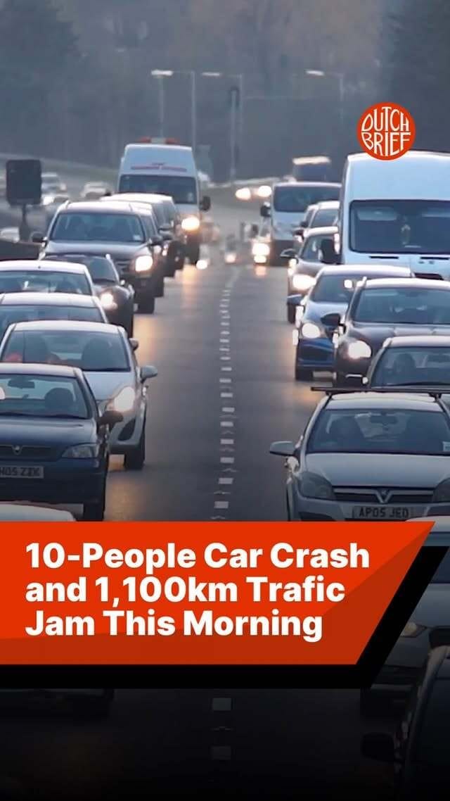 Three Hurt in 10-Car Groningen Crash; Rush-Hour Jams Reach 1,100km
