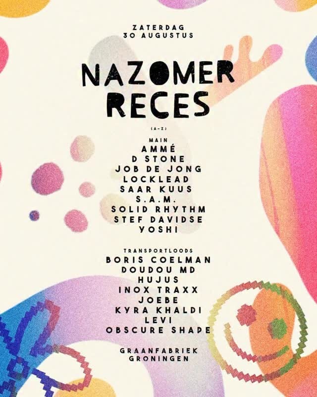 ZomerReces Festival returns on August 30 for a high-energy finale to the summer at Graanfabriek in Groningen. From 14:00 to midnight, partygoers can expect a full day of electronic music, with house, techno, and disco beats from artists like De Sluwe Vos, Mononoid, Talismann, and Laura Meester. Set in the industrial atmosphere of the Graanfabriek, the event promises an unforgettable indoor rave with bold visuals and big sound. A must for dance lovers looking to end the season with a bang.