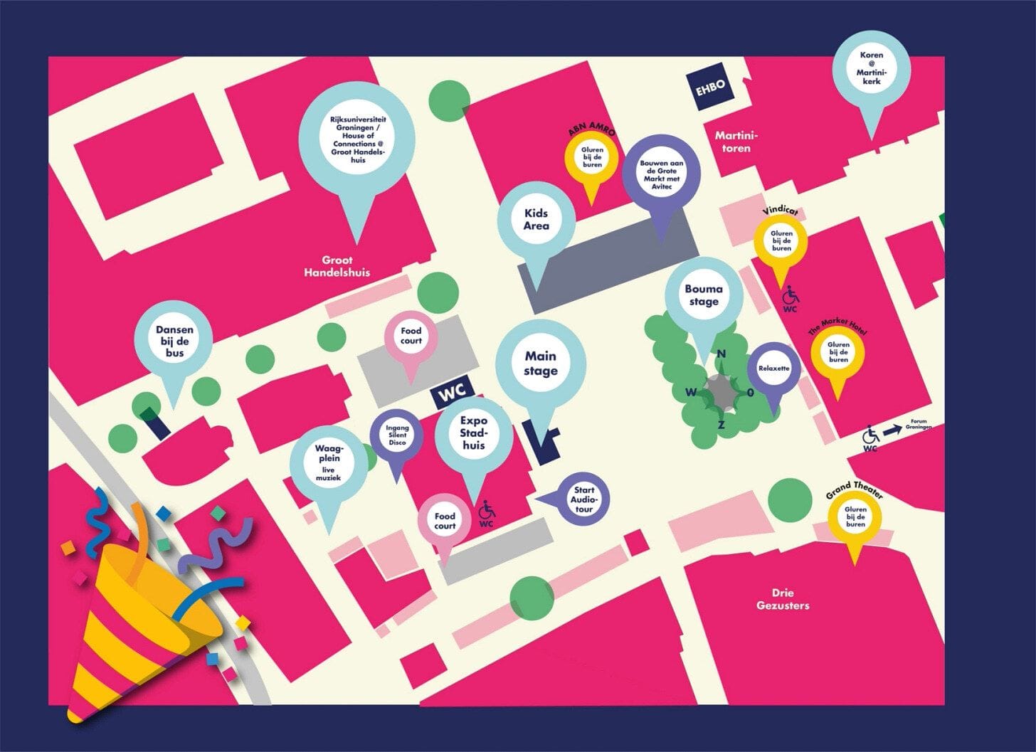 There is more to see and do in the area. You can attend choir performances at the Martini Church, enjoy an open house with guided tours at the student association Vindicat and the Grand Theater, and visit the Town Hall to see archaeological artifacts from the Grote Markt. In the evening, it's time to party!